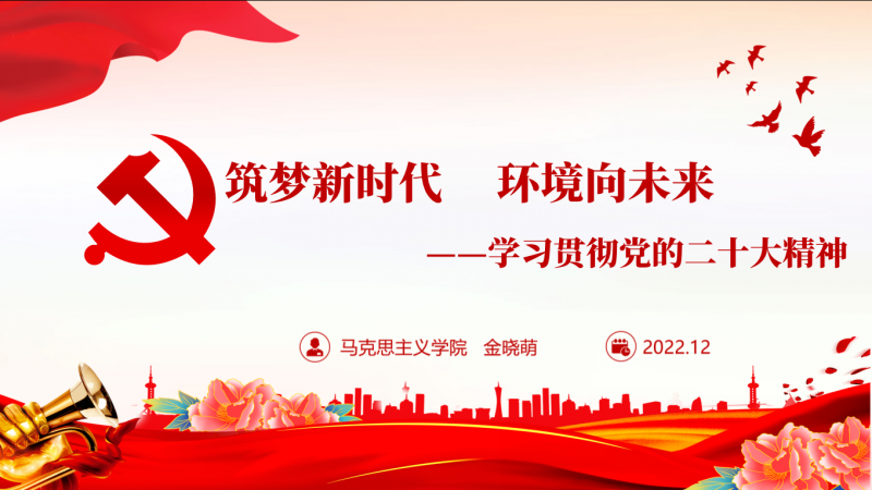 金晓萌主任以“筑梦新时代 环境向未来-学习贯彻党的二十大精神”为题,围绕大会主题,聚焦党的二十大报告新表述、新概括、新论断,深入浅出的解读了“三个务必”“六个必须坚持”“中国式现代化”“五个必由之路”等重要思想、重要观点。她认为,新时代中国青年应如何践行党的二十大精神,让青春之花在奋进的征程上绚丽绽放,应作为广大青年师生认真思考的问题。她寄语新时代青年要有理想主义追求、要有担当作为闯劲、要有团结奋斗品质、要有吃苦耐劳精神。