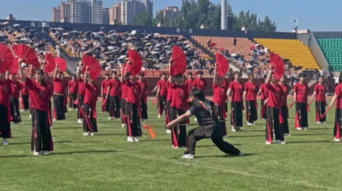 环境学院团体操表演融合中华传统文化元素、红色元素和武术元素,以扇子和红绸作为道具,展现了浓厚的爱国主义色彩。如果信仰有颜色,那一定是中国红。整齐划一的动作和饱满向上的状态,赢得满堂喝彩。最终,荣获团体操表演第一名